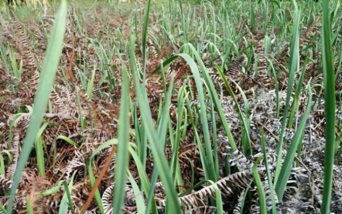 北方主要在生长后期发病。田间发病多始于叶尖或花梗中部,几天后蔓延至下部,初呈稍凹陷白色小斑点,中央微紫色,扩大后呈黄褐色纺锤形或椭圆形病斑。湿度大时病部产生黑色霉状物(病菌分生孢子梗和分生孢子),病斑多具同心轮纹,易从病部折断。贮藏期染病的鳞茎颈部变为深黄色或红褐色软腐状。大田生长期为害叶和薹,贮藏期为害鳞茎。南方苗高10—15cm开始发病,生育后期为害最甚。