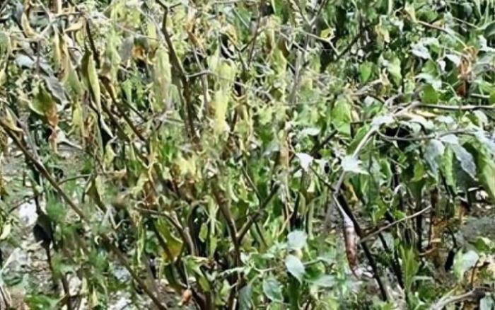 辣椒病毒病表现为斑驳花叶型和畸形丛枝型,植株矮化、叶片黄绿斑驳,叶脉有褐色坏死斑点,主茎和枝条出现褐色坏死条斑,可用千红、特福力喷雾防治。疫病危害植株,可用百泰、施得益、代森锰锌或氰霜唑喷雾防治。