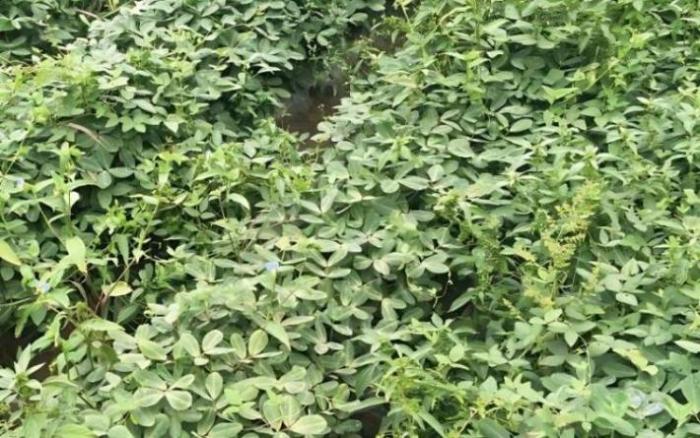 花生苗势过旺时可在初花期至盛花末期喷施生长调节剂,初花期后施用效果较好。一般在开花前和谢花后各喷施一次15%多效唑粉剂40克/亩,或于盛花期至盛花末期喷施烯效唑和三十烷醇。施用适期为花生株高35公分左右、大量果针入土且第一批荚果如小手指头粗、第二批果针头部似鸡嘴状时。