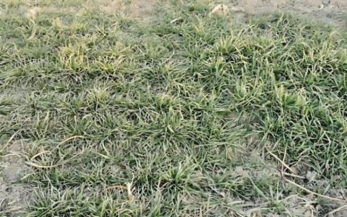 小麦霜霉病在田间低洼处或水渠旁零星发生。苗期染病表现为病苗矮缩,叶片淡绿并有轻微条纹状花叶,分蘖稍增多。返青拔节后染病叶色变浅,出现黄白条形花纹,叶片增厚、皱缩扭曲,病株矮化。穗期病株显著矮化,高度不及健株2/3,重病株不能抽穗或在抽穗期死亡。轻病株穗畸形,常包裹于旗叶鞘中或呈弯曲龙头状,颖片肥大,转色延迟,有时基部小穗轴呈分枝穗状,下部小穗颖片可转化为叶状。病株茎秆粗壮,表面覆白霜状霉层。染病严重时千粒重平均下降75.2%。