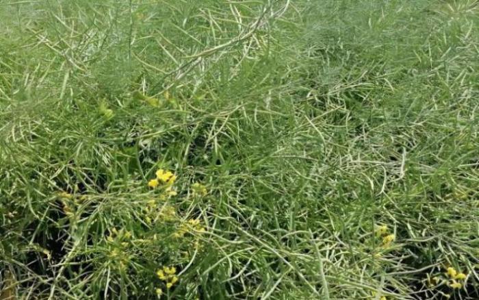 油菜白粉病症状表现为茎杆、叶片、角果出现颗粒粉状白色附着物。该病主要为害叶片、茎、花器和种荚,产生近圆形放射状白色粉斑,菌丝体生于叶两面,后期白粉常布满叶、花梗和荚的整个表面。发病初期仅有少量点块细丝状物向外扩展,后连结成片,叶正反两面均覆盖污白色霉状物。轻症植株生长开花受阻,荚果稍变形;重症白粉状霉覆盖整个叶面,后期叶片变黄枯死,植株畸形,花器异常甚至死亡。